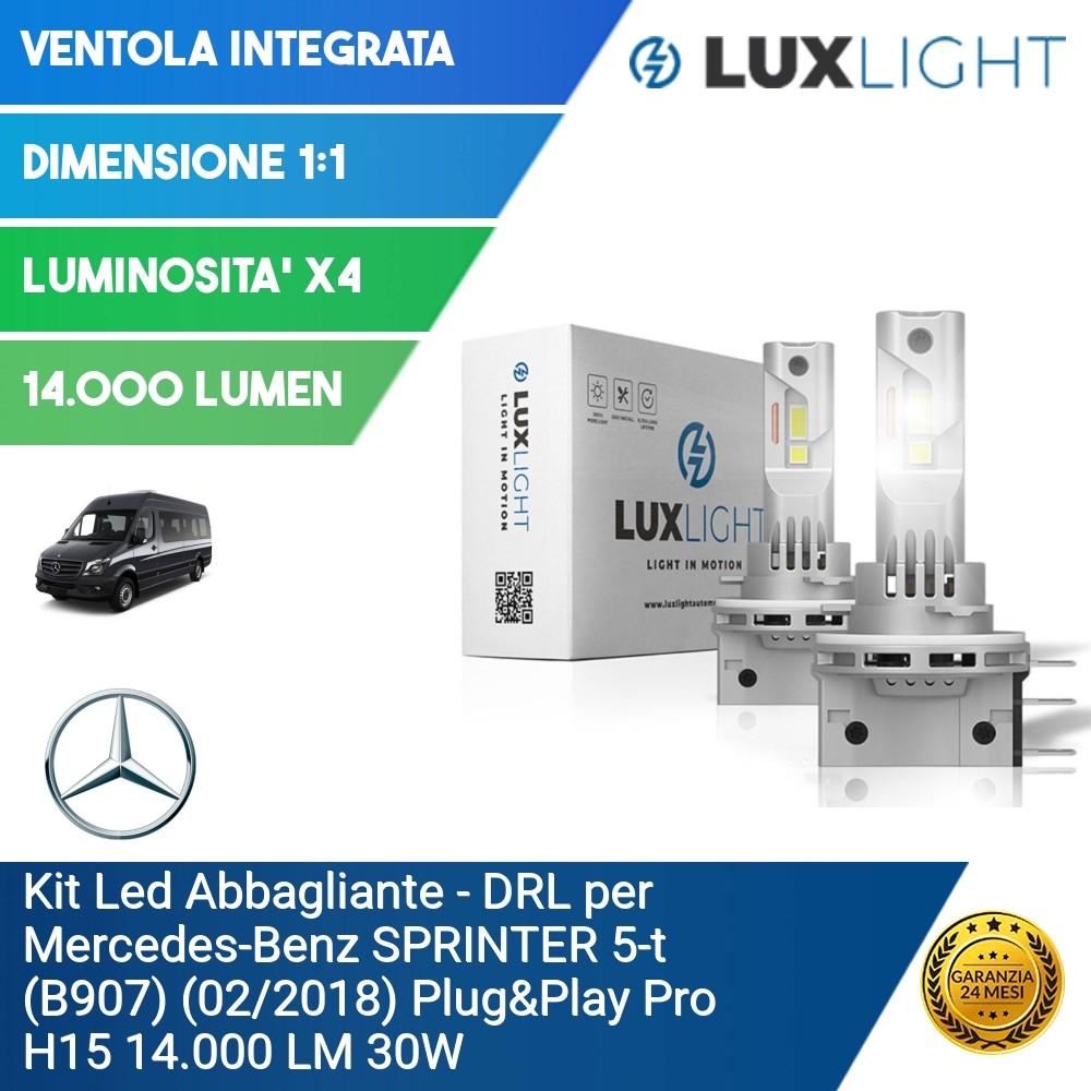 Kit Led Abbagliante - DRL per Mercedes-Benz SPRINTER 5-t (B907) (02/2018) Plug&Play Pro H15 14.000 LM 30W