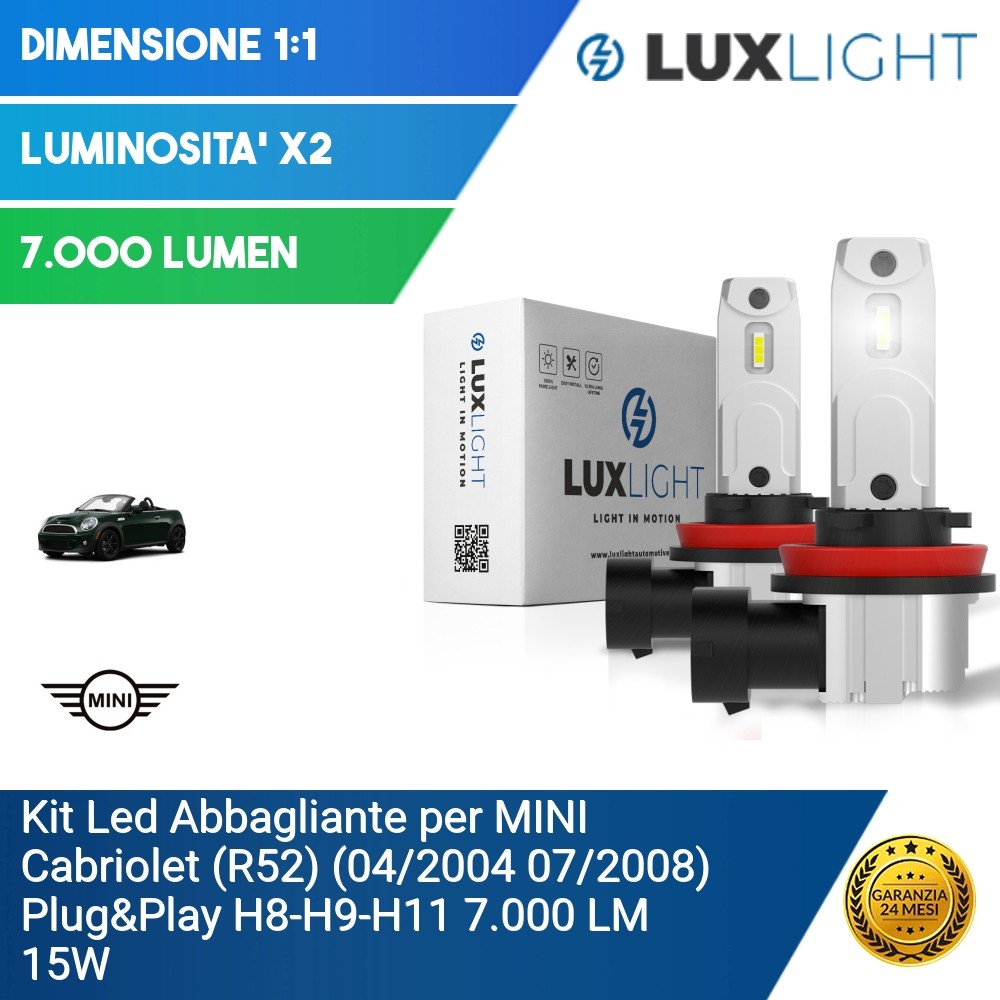 Kit Led Abbagliante per MINI Cabriolet (R52) (04/2004 07/2008) Plug&Play H8-H9-H11 7.000 LM 15W
